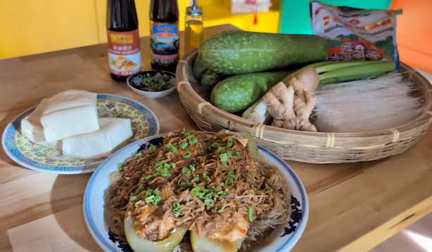Shop and eat through Chinatown as you pick up all the ingredients you’ll need to make your Braised Fuzzy Squash Stuffed with Tofu & Shrimp.